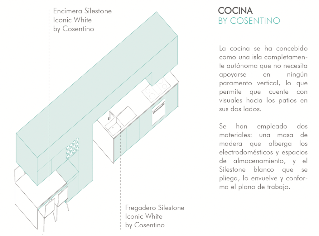 Funcionalmente, la PIEL alberga los espacios servido- res, zonas de tránsito y habita- ciones de uso común, por lo que adoptan un carácter más VERSÁTIL. Aquellos de uso privativo se han alojado en los MÓDULOS FUNCIONALES. Además de la espacialidad de estos elementos, esto se tradu- ce en la selección de los materiales, empleándose un material más frío como el hormigón para la piel y otro más cálido como la madera para las cajas.